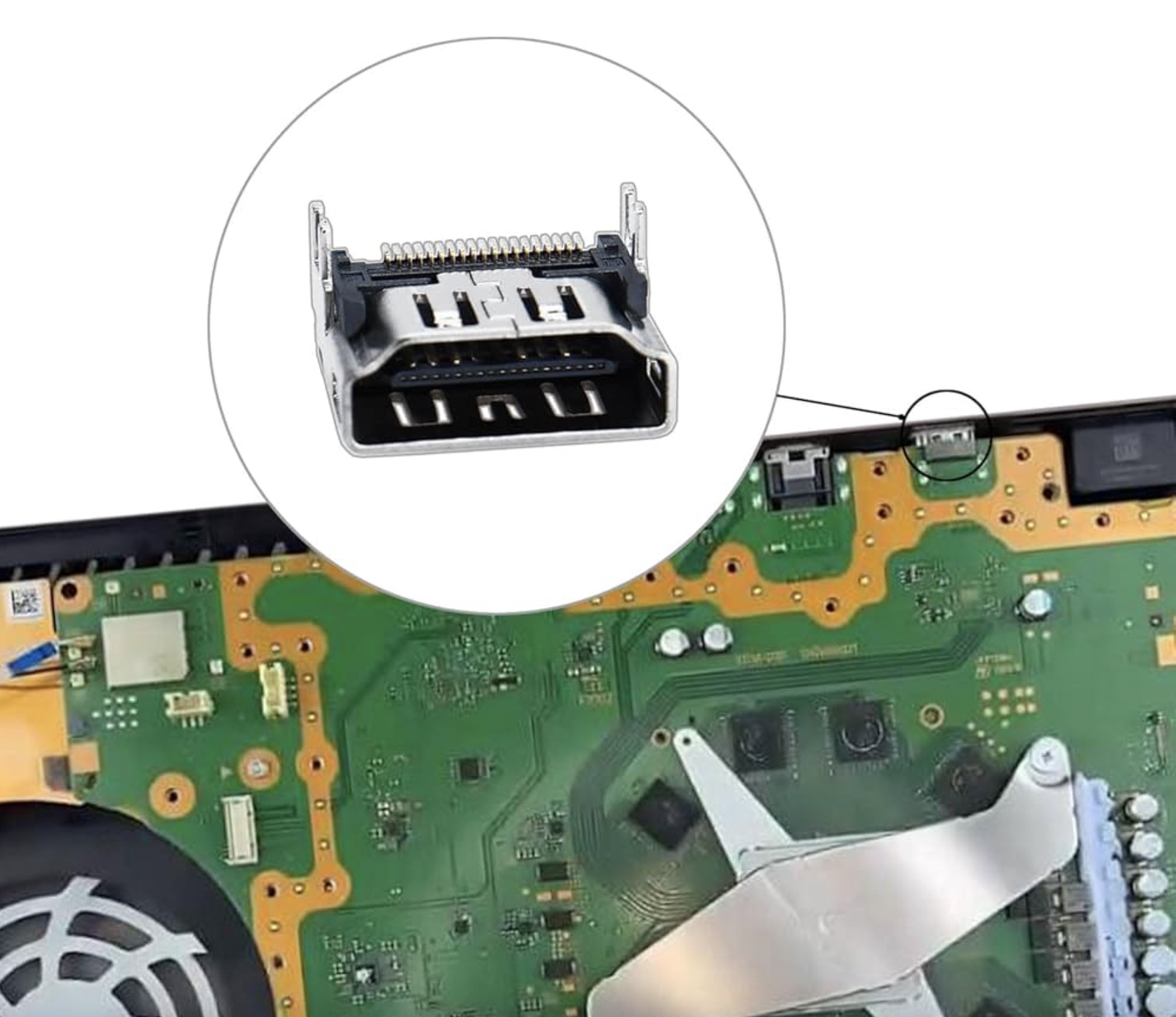 Votre PS5 s’allume (lumière bleue ou blanche) mais aucun signal n’apparaît sur la télé ? Le port HDMI est souvent tordu ou arraché de la carte mère. Nous dessoudons le port endommagé et installons un connecteur neuf renforcé pour un signal vidéo impeccable.