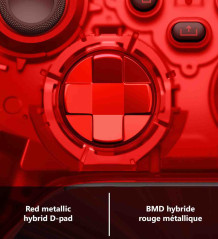 • Maintenez l'action avec des poignées rouges caoutchoutées sur le boîtier arrière. Restez sur la cible avec des déclencheurs métalliques rouges et un D-pad métallique assorti entouré d'un accent rouge foncé. Affinez votre jeu avec des joysticks bicolores avec des bases rouges et des sommets rouge foncé.